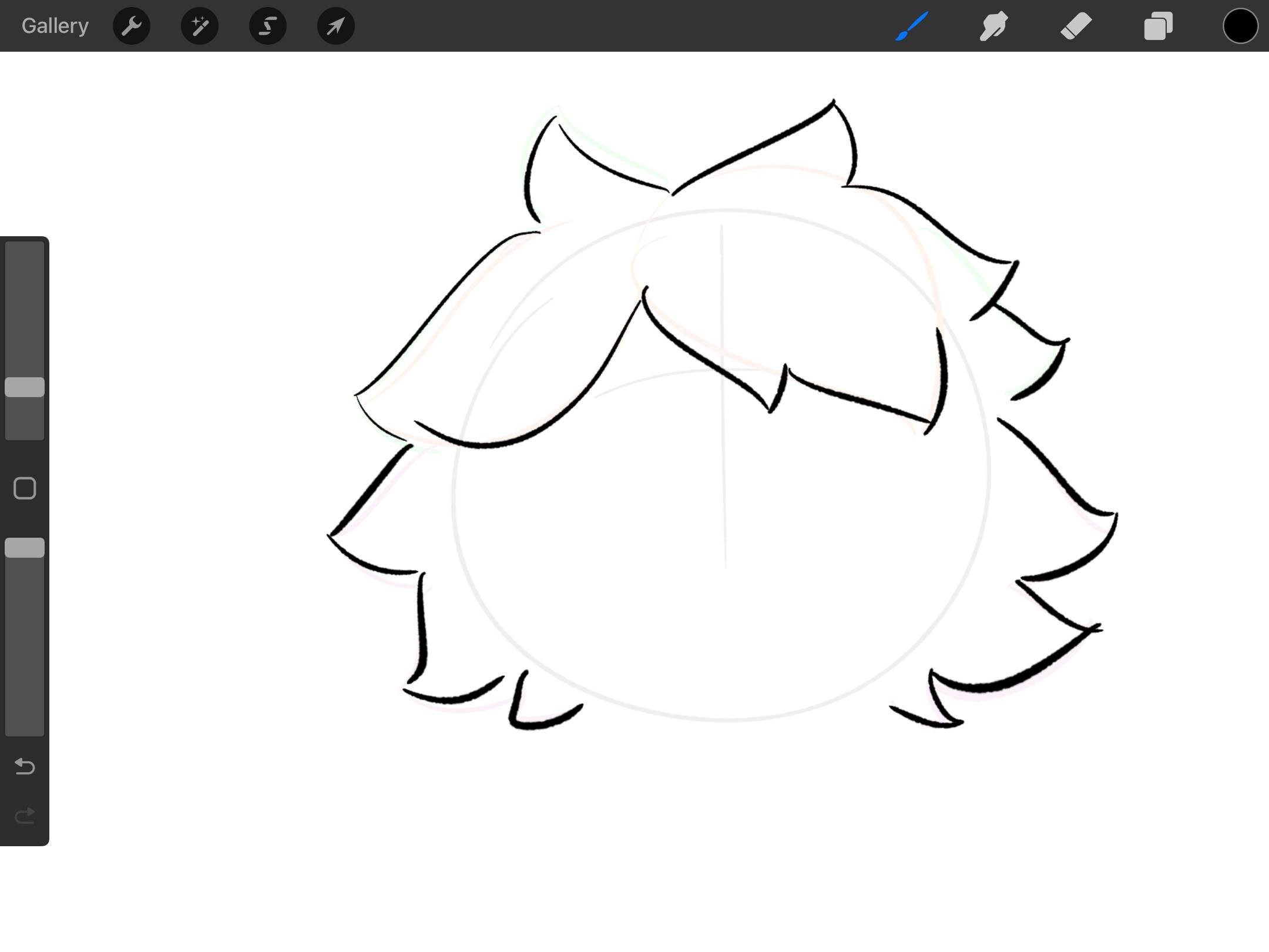 In short, it is just, messy, swooped to the right, and its poofy and hangs out a bit at the back